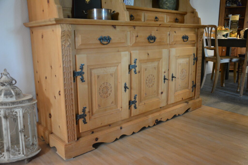 Weil ich einfach mega dran hänge, obwohl es nicht sehr alt ist. Aber es hängen so viele Erinnerungen mit diesem Arvenbuffet zusammen. Ich weiss noch, wer es gemacht hat, kann mich aber nicht mehr an den Namen erinnern. Wir haben eine sehr lange gemeinsame Geschichte. Zuerst war es ein reines Zweckmöbel für die Ferienwohnung, aber spätestens mit dem Wasserschaden, welches es erlitten hat, ist es mir zunehmend ans Herz gewachsen. Es bietet unglaublich viel Plat für allerlei Dinge. Und immer wieder entdecke ich eine Ecke, die noch nicht gefüllt ist oder wo ich was drin verstaut habe. Und natürlich duftet es auch wunderbar. Deshalb pflege ich es auch regelmässig.
